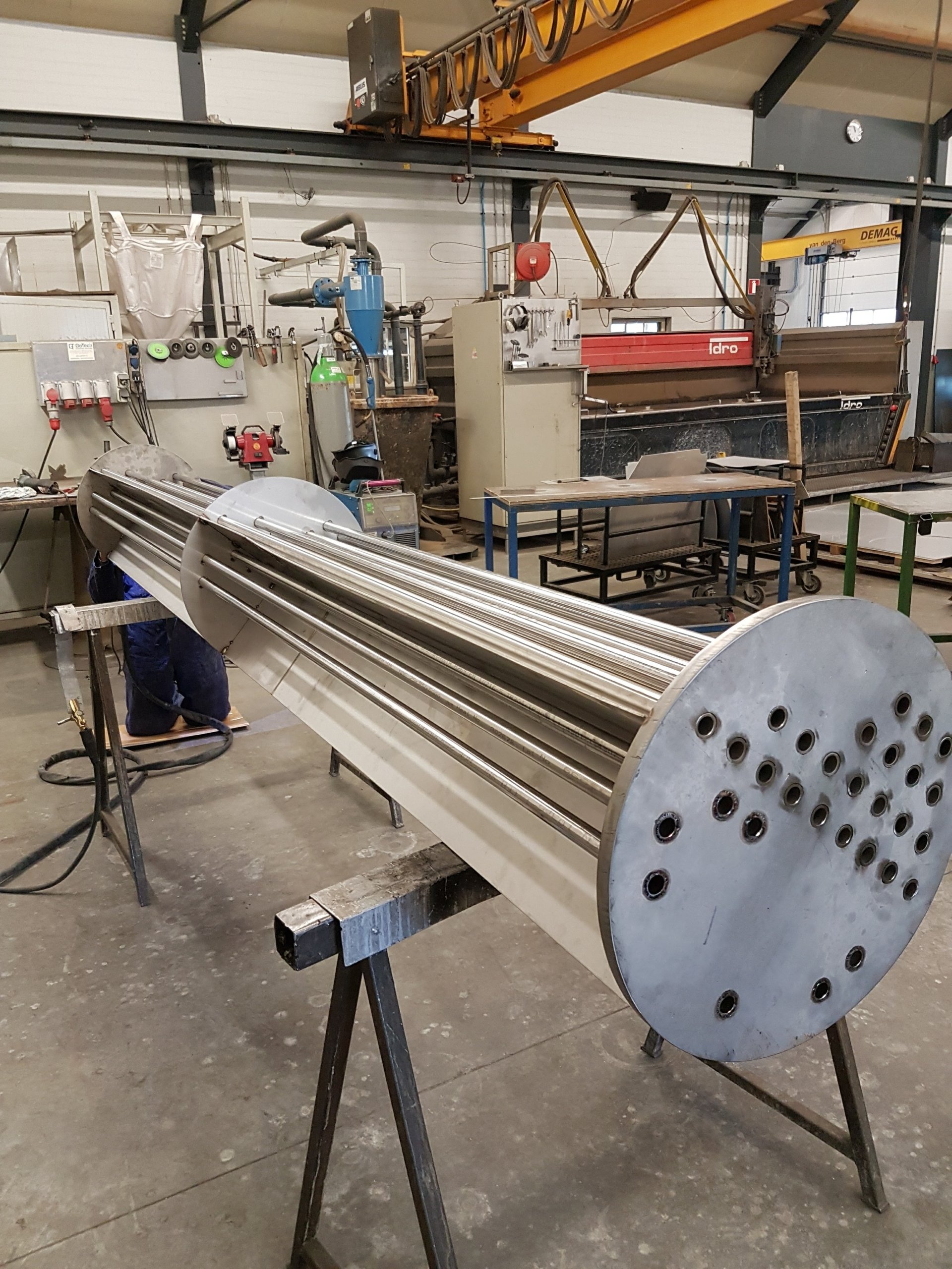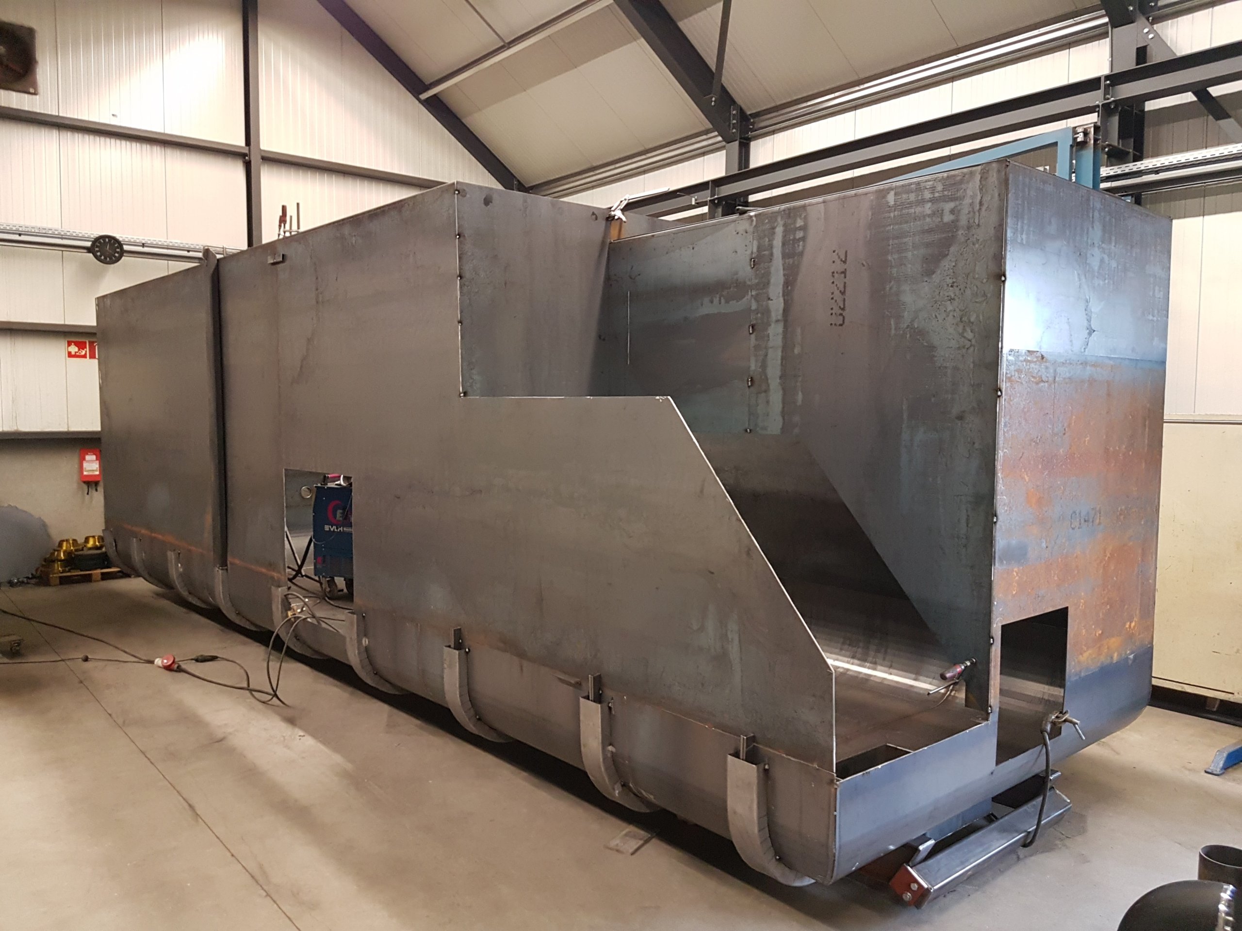 In 2017 gebeurt er veel: ons team groeit naar negen medewerkers. In april wordt de nieuwe lasermachine geleverd, wat zorgt voor meer capaciteit maar ook ruimtegebrek. We bouwen tijdelijk een ronde loods voor opslag en zaagwerk. Een uitbreidingsverzoek bij de gemeente wordt afgewezen, waardoor Beekzicht in beeld komt als mogelijke nieuwe locatie. We maken en leveren de eerste vloeistofcontainer (714) voor HCI. Eind van het jaar kopen we een bestelbusje. De bouwvak zetten we feestelijk in en het kerstfeest vieren we bij De Rithse Hoeve in Breda.