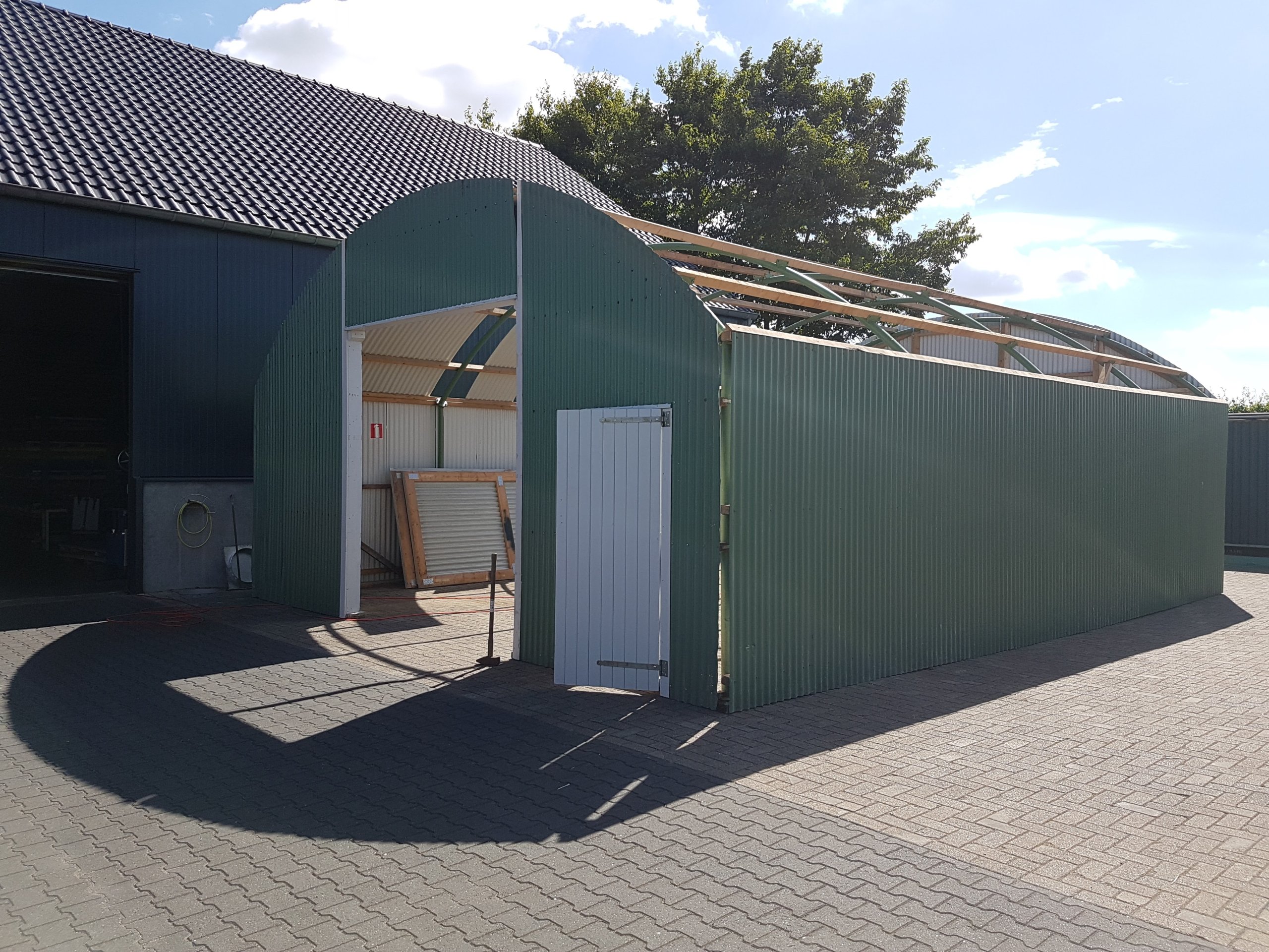 In 2012 merken we dat de ruimte in onze werkplaats steeds krapper wordt om alle materialen op te slaan. We richten de kleine werkplaats in voor het maken van staalwerk en schaffen een tent van 200 m² aan om materialen netjes en droog op te kunnen slaan.